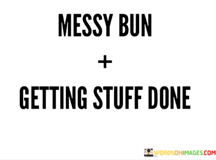 The phrase "Messy Bun Getting Stuff Done" celebrates a practical and determined approach to life. It suggests that sometimes, in the midst of a busy day or while tackling tasks, we may not have the time or inclination for a perfect appearance, like a neat hairstyle. Instead, we opt for a quick and functional "messy bun" hairstyle, focusing on accomplishing our goals and responsibilities.