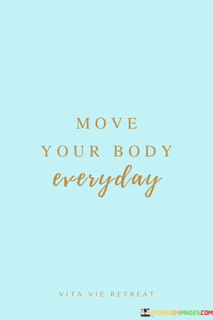 In essence, this quote encourages us to prioritize our physical well-being by incorporating daily movement into our lives. By doing so, we not only enhance our physical health but also nurture our mental and emotional well-being, ultimately leading to a happier and healthier life.