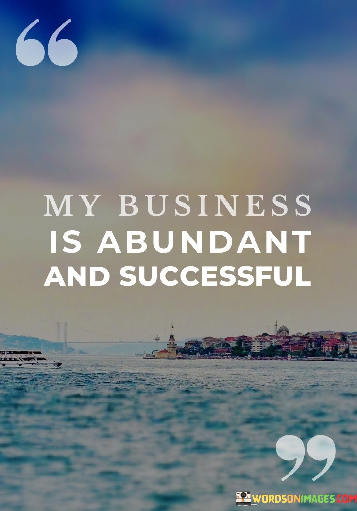 This quote reminds us that it's good to have a positive outlook and believe in our own success. When we say our business is abundant and successful, it can help us stay motivated and work hard to make it true. It's like having a confident mindset that can attract more good things to our business.