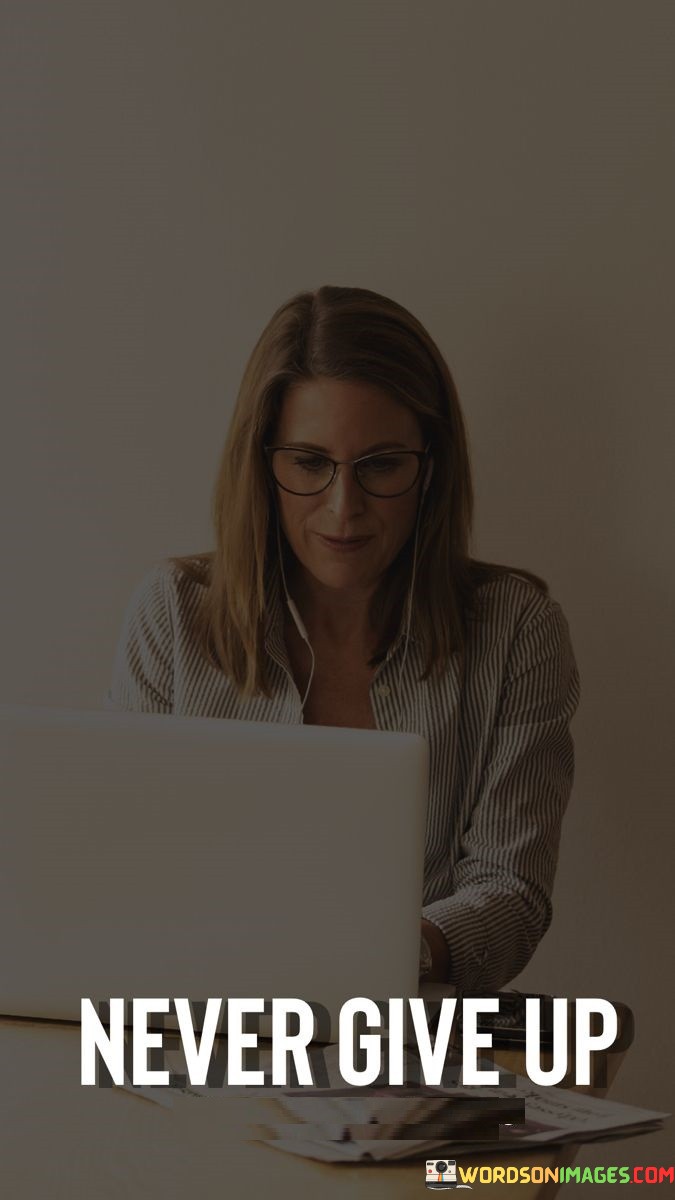 Never giving up isn't about blindly forging ahead but adapting and persevering. Like a tree bending in the wind, flexibility and resilience are crucial. So, keep your goals in sight, learn from your experiences, and let your determination be the driving force that propels you forward in the face of adversity.