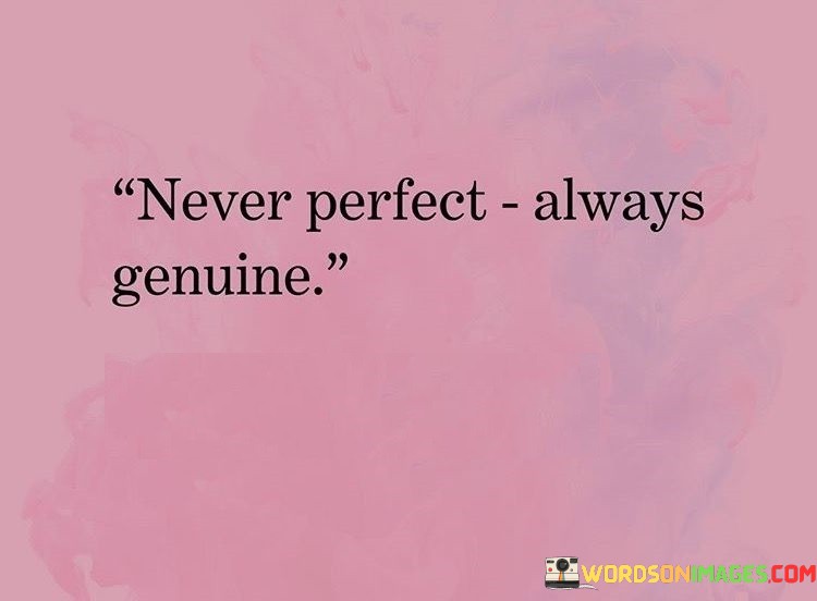 In a society driven by unrealistic standards of flawlessness, this quote serves as a reminder that perfection is an unattainable goal. Instead, it encourages us to prioritize authenticity, to be genuine in our actions and interactions. Being genuine means accepting our flaws, acknowledging our mistakes, and letting go of the exhausting pursuit of perfection. It's a call to be real, to be honest with ourselves and others.