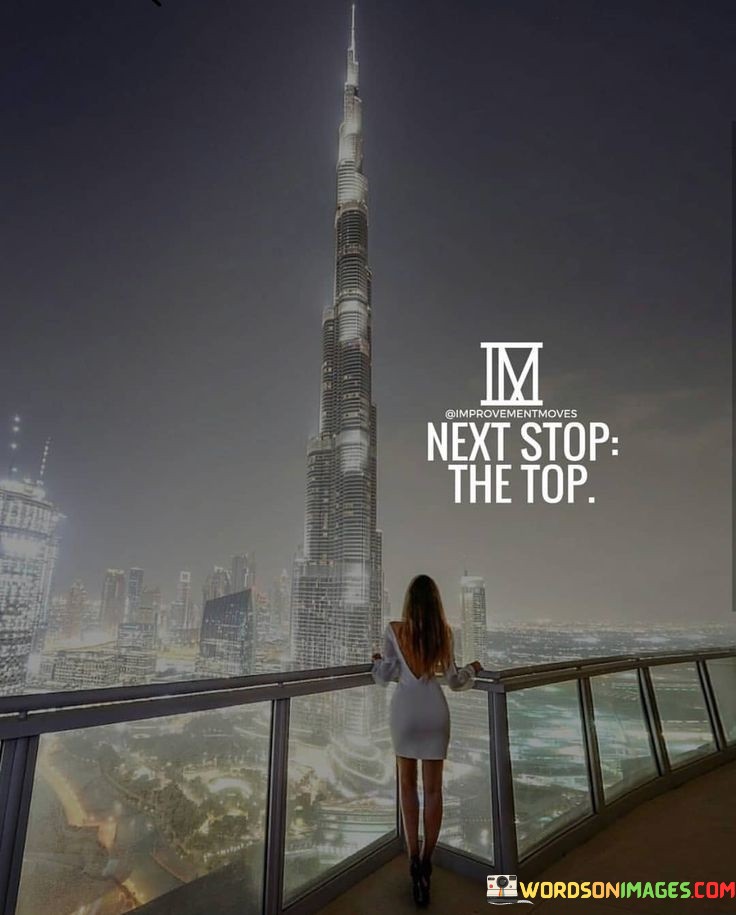 In life, we're all on a journey, and "Next Stop: The Top" is like a signpost guiding us along the way. It's a reminder that our goals and aspirations are within reach, just one step away. Each day, we move closer to our destination, climbing the ladder of success, and the top is where we want to be.