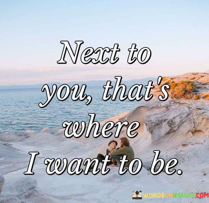 The quote "Next to you, that's where I want to be" is a heartfelt declaration of love and a desire for closeness and companionship. It expresses a deep emotional connection and a strong longing to be with the person to whom it is addressed.