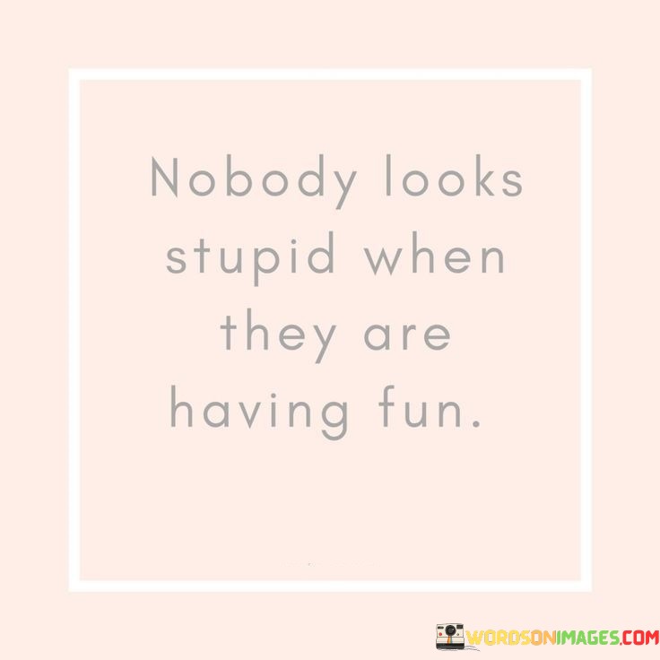 When people are immersed in fun, any worries about appearing foolish vanish. The quote conveys that the genuine experience of enjoyment is powerful enough to overshadow self-consciousness. It implies that the freedom and pleasure that come with having fun allow individuals to be themselves without fear of judgment.
