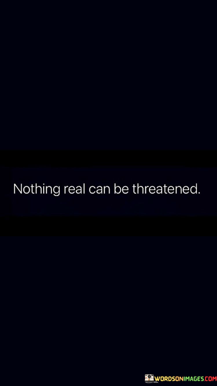This quote can be seen as a source of comfort and empowerment. It reminds us that, even in the face of adversity or external pressures, our true selves and the things we hold dear are resilient. It encourages us to prioritize and protect what is real and genuine in our lives, knowing that these aspects are strong and enduring. Ultimately, it's a reminder to stay true to ourselves and our values, as these are the things that remain unthreatened by the challenges of the world.