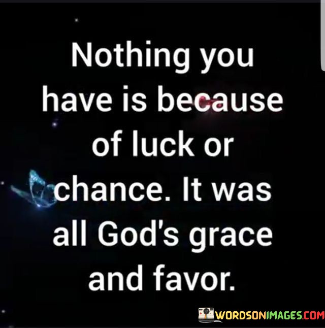 At its core, this statement emphasizes the idea that individuals should recognize and appreciate the role of divine grace and favor in their lives. It signifies the belief that God's blessings, opportunities, and provisions are not a result of random chance or luck but rather a deliberate act of grace and favor extended to those who believe and trust in Him.