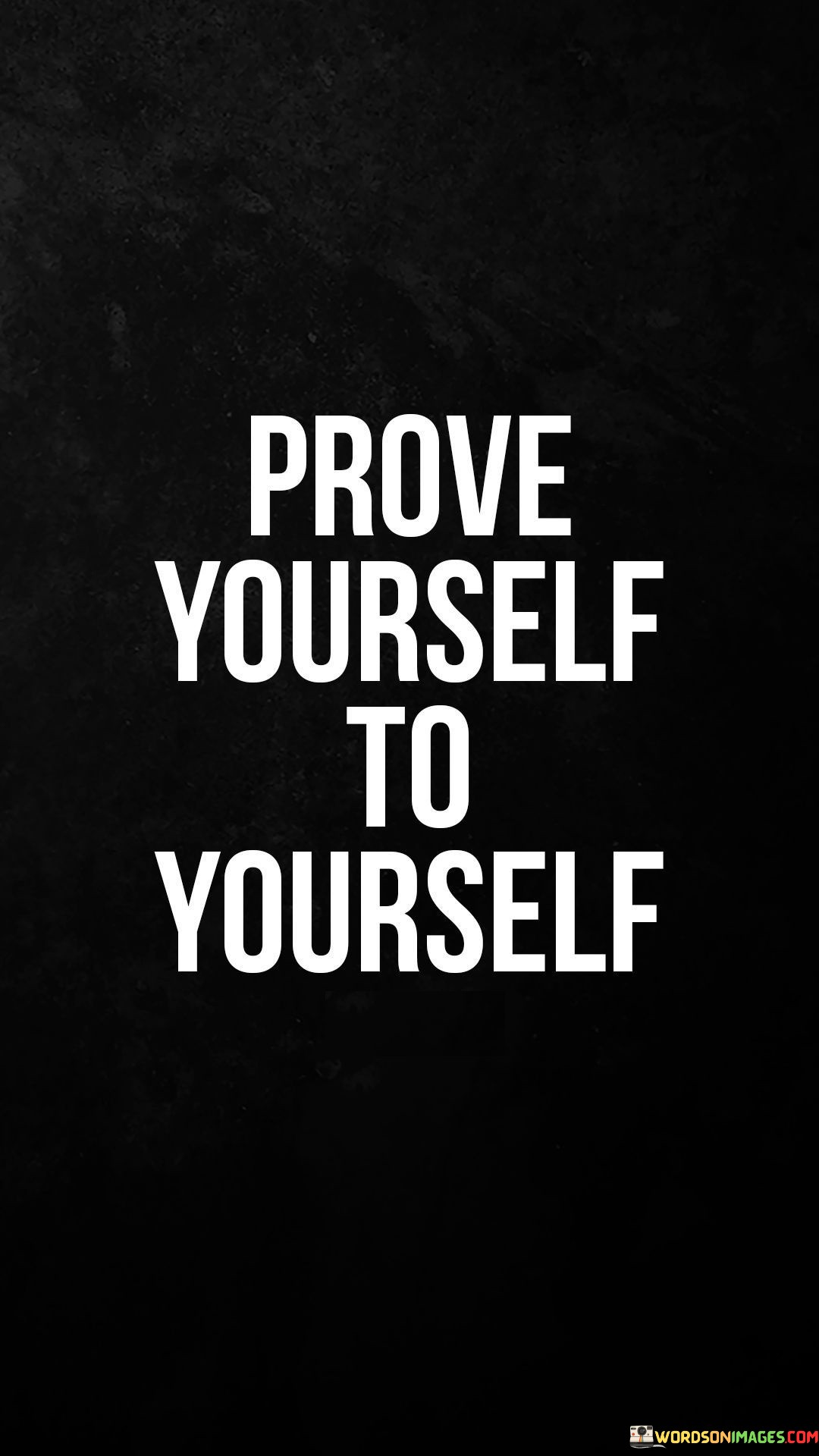 First, it says, "Prove Yourself." This means you should show what you can do, not to others, but to yourself. It's like when you set a goal, and you work hard to achieve it. You're not doing it to impress anyone else, but to prove to yourself that you have the ability and determination to succeed.