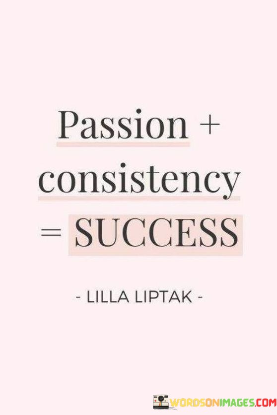 The statement underscores the interconnectedness of these elements. It implies that passion fuels consistency, which in turn leads to success. This sentiment encourages individuals to align their pursuits with their passions and commit to steady progress.