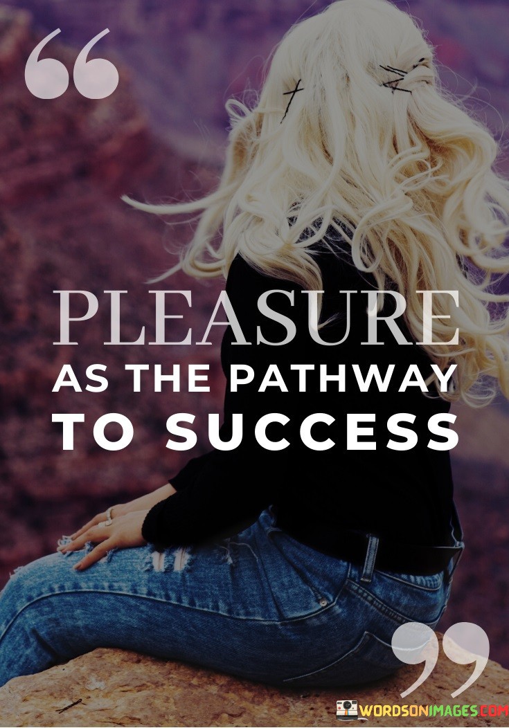 "Pleasure as the pathway to success" implies that when we genuinely enjoy what we do, we are more likely to invest time and effort in it. This dedication, driven by pleasure, can ultimately lead to mastery and achievement.