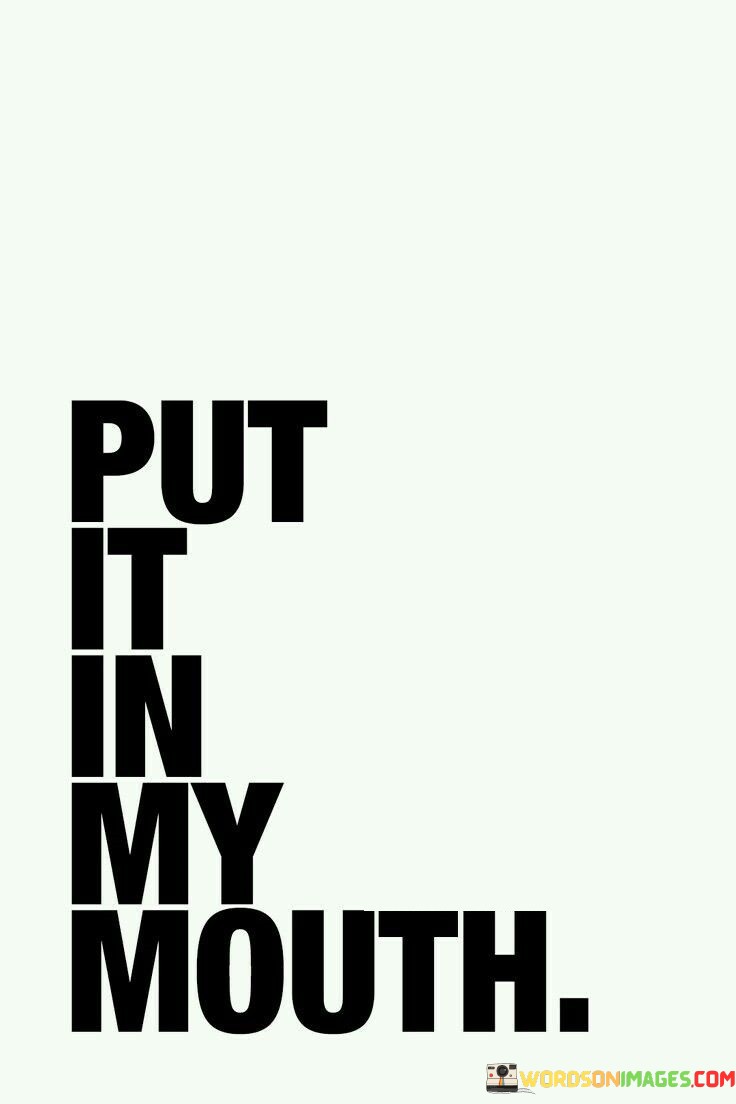 This straightforward phrase, "Put it in my mouth," is a simple request or statement related to the action of eating or tasting something. It's often used in casual, everyday situations where someone is expressing their desire to try a particular food or drink. This phrase can be seen as an expression of curiosity or enthusiasm for culinary experiences.