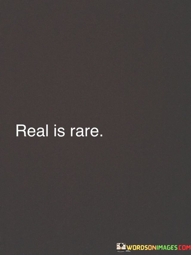 Authenticity stands out in a world often masked by pretense. "Real is rare" highlights that genuine people and sincere moments are precious gems amid the superficiality of society. It's like finding a diamond in a sea of rhinestones.