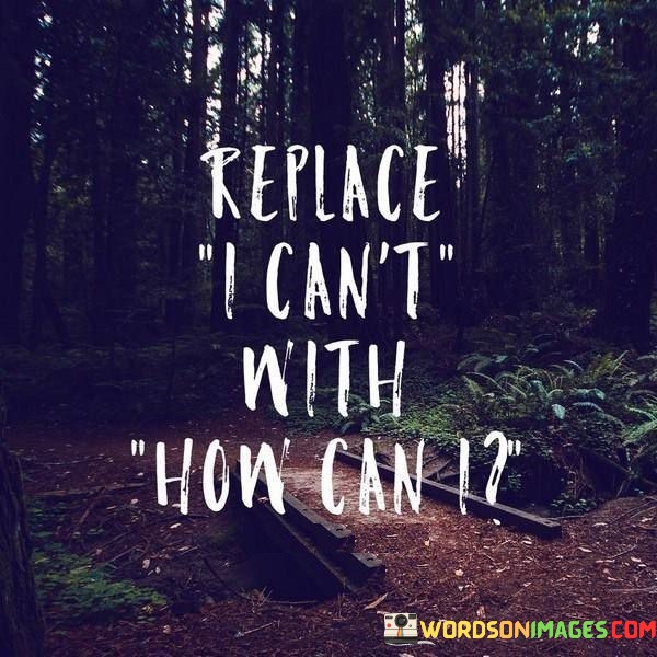 Shift from self-limitation to problem-solving. This quote emphasizes a transformation in mindset from one of self-doubt and limitation ("I can't") to one of proactive problem-solving and possibility ("How can I?"). It encourages a shift from a fixed mindset to a growth mindset.
