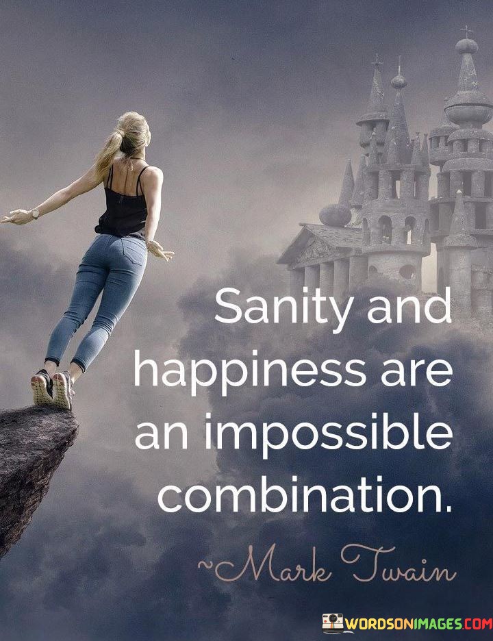 Balancing sanity and happiness is challenging. It's like juggling fire and water. Being sane sometimes means facing tough realities. Like a stable boat in a storm, sanity is about handling life's challenges.