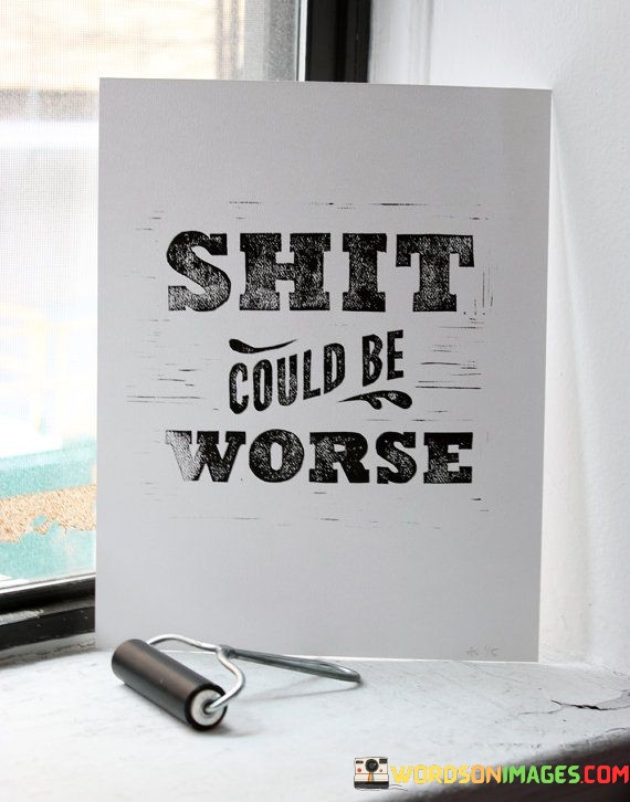 "Shit Could Be Worse." These five simple words may seem like a blunt, even cynical, statement at first glance. However, when we delve deeper, we find a profound message of resilience and perspective. Life can be tough, throwing us unexpected challenges and hardships. Yet, this quote encourages us to adopt a pragmatic mindset.