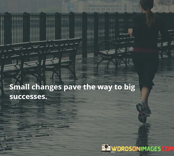 The phrase "Small changes pave the way to big successes" underscores the significance of incremental progress in achieving substantial goals. It emphasizes that success often begins with small, manageable steps or adjustments that accumulate over time.