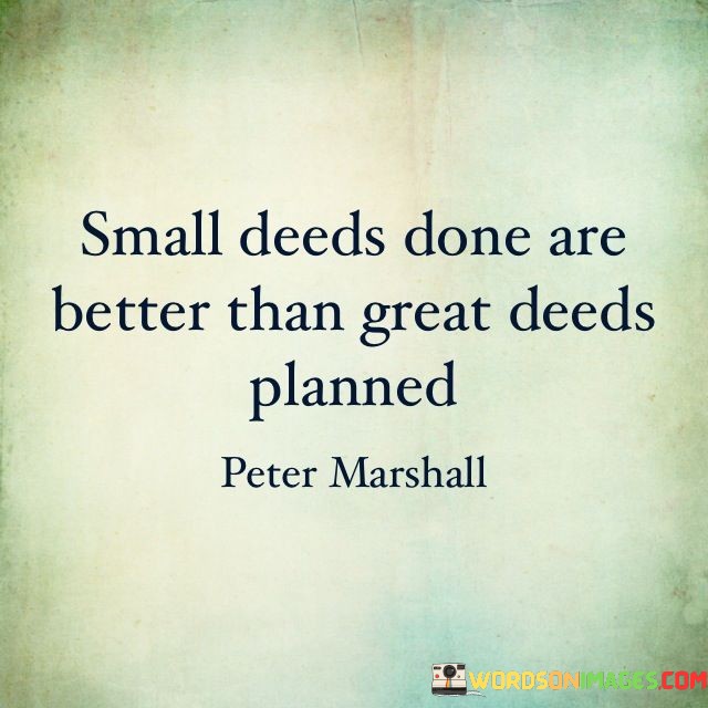Describing small deeds as more valuable emphasizes their impact. It's a reminder to start small and take consistent actions. By focusing on achievable steps, you make progress and achieve your goals more effectively than just dreaming.