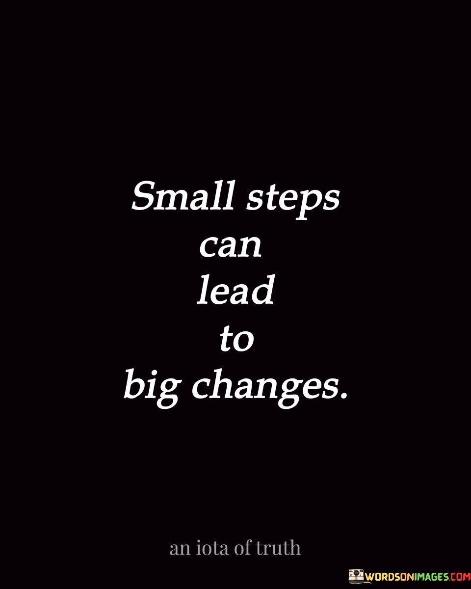 In life, it's like taking baby steps that can eventually lead to giant leaps. Consider each small action as a building block that, when combined with others, constructs a solid path toward significant change. These seemingly insignificant steps may not shout their importance, but they silently pave the way for substantial transformations.