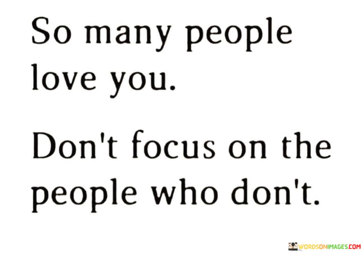 The quote urges a shift in perspective. It advises focusing on the abundance of love and support rather than dwelling on those who may not express affection. By acknowledging the numerous people who care, one can cultivate positivity and gratitude, lessening the impact of those who don't.