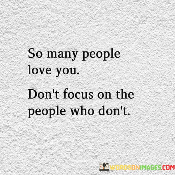 This quote encourages a positive perspective on relationships and self-worth. It advises individuals to direct their attention and energy towards the people who love and appreciate them, rather than dwelling on those who may not.
