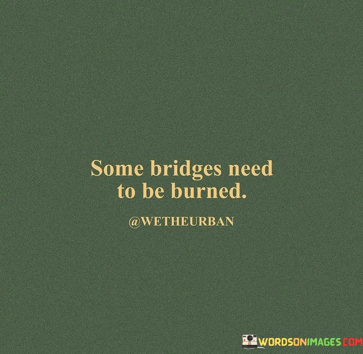 This quote suggests cutting ties with certain connections. It means some relationships are harmful, so it's better to end them. Like removing a shaky bridge, it's about protecting yourself from negativity and moving forward.