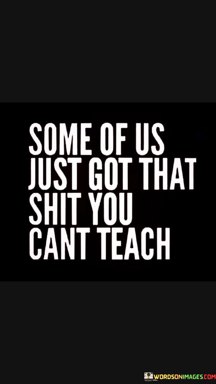 This quote emphasizes natural abilities over learned skills. It means that certain individuals possess innate talents that can't be acquired through teaching. These talents are unique and intrinsic. It acknowledges the existence of qualities that come naturally and can't be replicated.