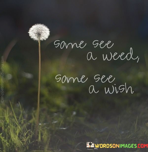This quote captures the idea that beauty lies in the eye of the beholder. A weed might be unappealing to some, yet to others, it holds the potential for wishes. This notion extends to life in general – what might seem undesirable at first glance could hold hidden opportunities.