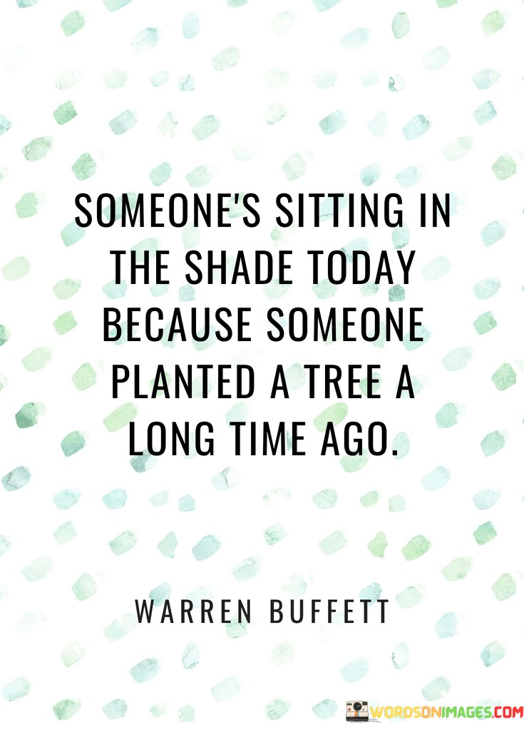 This thoughtful statement conveys the idea of long-term foresight and the ripple effects of actions. It suggests that present benefits or successes often stem from the thoughtful efforts and investments of the past.