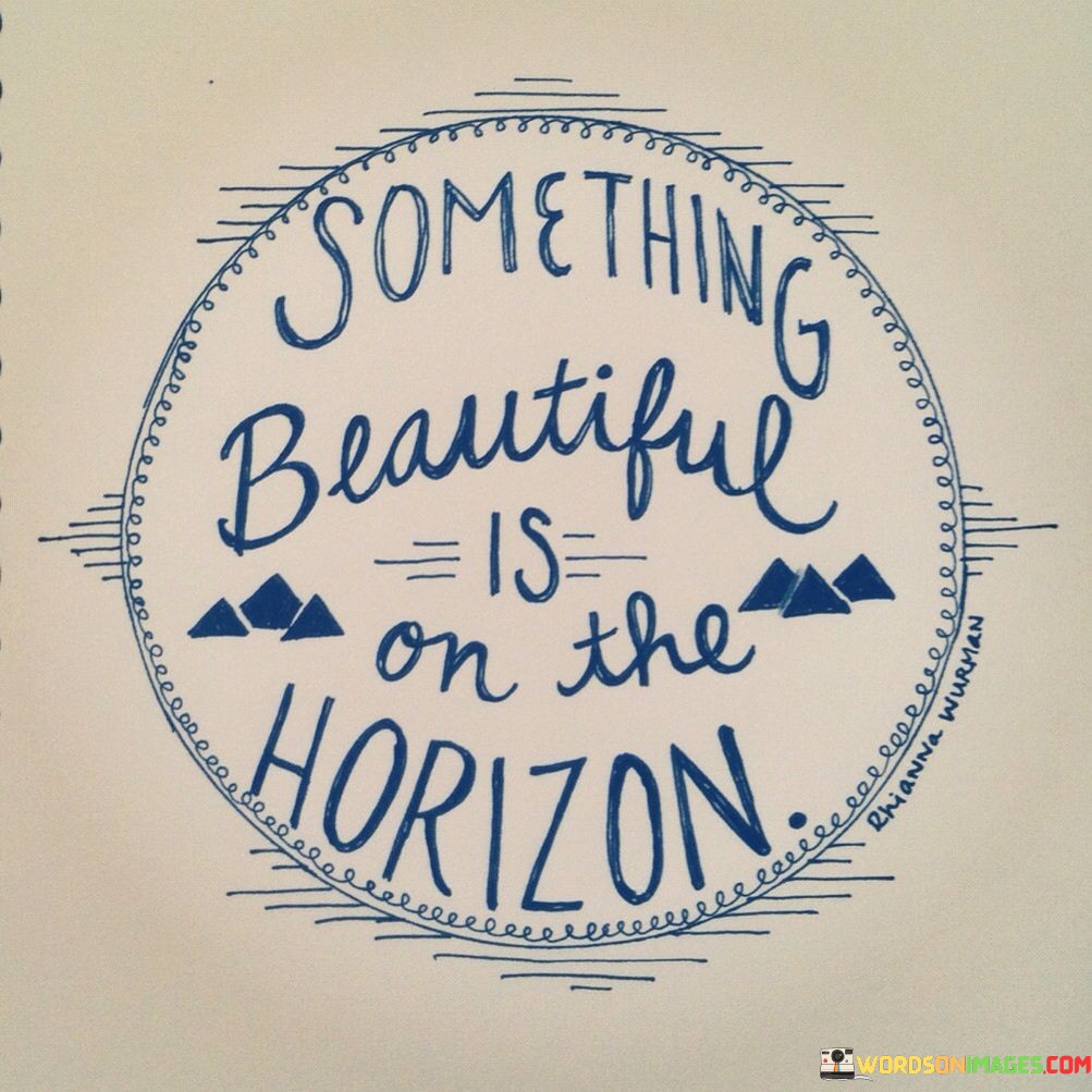 In a world often marred by uncertainty, the quote ignites a flame of anticipation. It's a whisper of encouragement during tough times, inviting us to hold onto faith. "Something beautiful is on the horizon" acknowledges the struggles we endure today while emphasizing the transformative power of time. It could refer to personal growth, unexpected opportunities, or the healing of wounds. This evocative phrase underscores the cyclical nature of life—how difficulties pave the way for newfound strength and joy.