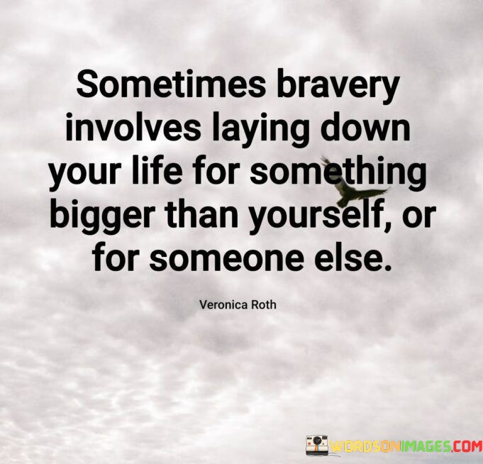 "For something bigger than yourself" underscores the nobility of acting for a higher purpose, such as protecting others, defending principles, or upholding justice.
