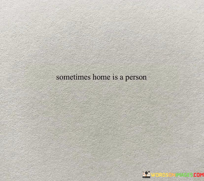 At times, the feeling of home isn't tied to a place or a physical structure; instead, it's found within a person. This quote beautifully expresses the idea that the true essence of home can be embodied by an individual. In other words, the presence of someone special can provide a profound sense of comfort, belonging, and security, making them feel like home.