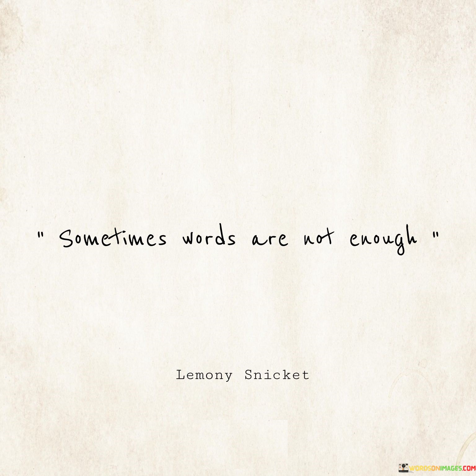 The quote encapsulates the limitations of language in expressing certain emotions. It's a recognition that there are instances when what we experience or want to convey goes beyond the capabilities of words. It speaks to the idea that there's a realm of emotion that dwells beyond the confines of language, where actions and presence hold more significance than any verbal communication.
