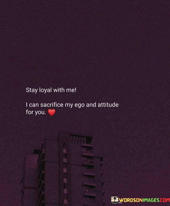 Overall, the quote emphasizes the value of loyalty and the willingness to make personal sacrifices for the sake of a harmonious and enduring connection. It speaks to the idea that genuine love and loyalty can transcend individual egos and attitudes, leading to a stronger and more fulfilling relationship.
