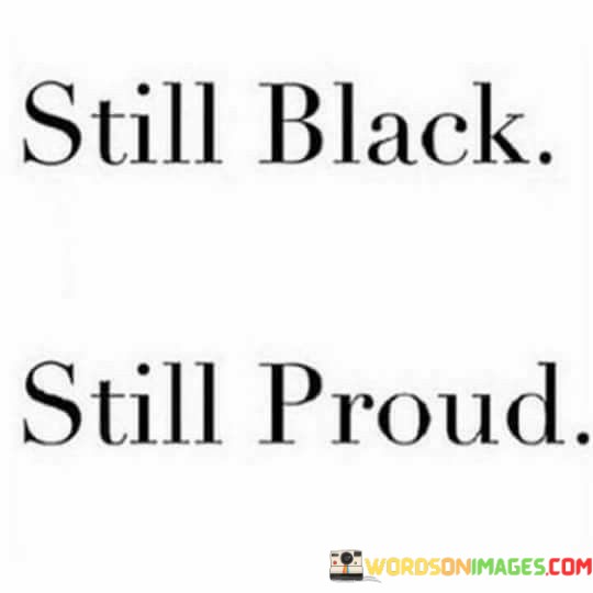 This powerful quote, "Still Black Still Proud," encapsulates the enduring strength and unshakable pride of the Black community. It signifies a steadfast commitment to embracing one's cultural identity and heritage, regardless of the challenges and adversities faced.