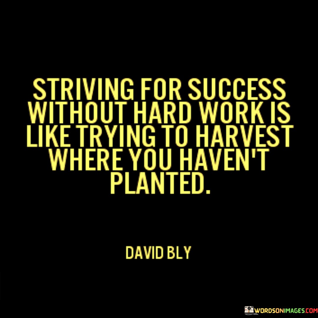 This analogy draws a parallel between achieving success and reaping what you sow. The quote implies that expecting success without putting in the necessary effort is akin to expecting a harvest from land where you haven't planted any seeds.