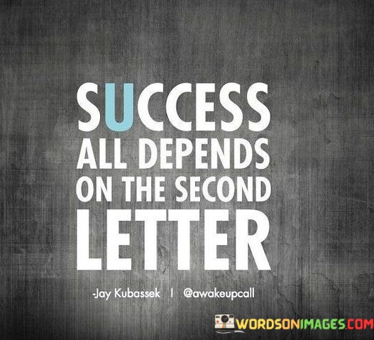 The phrase "Success All Depends On The Second Letter" playfully highlights the role of mindset and perspective in achieving one's goals. In this context, the first paragraph suggests that the initial part of the word "success" is symbolic of the starting point in the journey to achieve success.