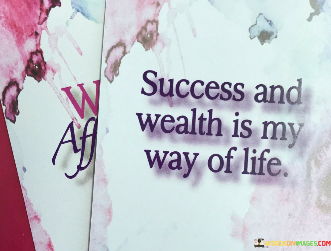 In essence, this phrase encapsulates the idea that success and wealth are not isolated achievements but a way of living. It portrays a mindset of abundance and achievement, suggesting a proactive approach to realizing one's aspirations.