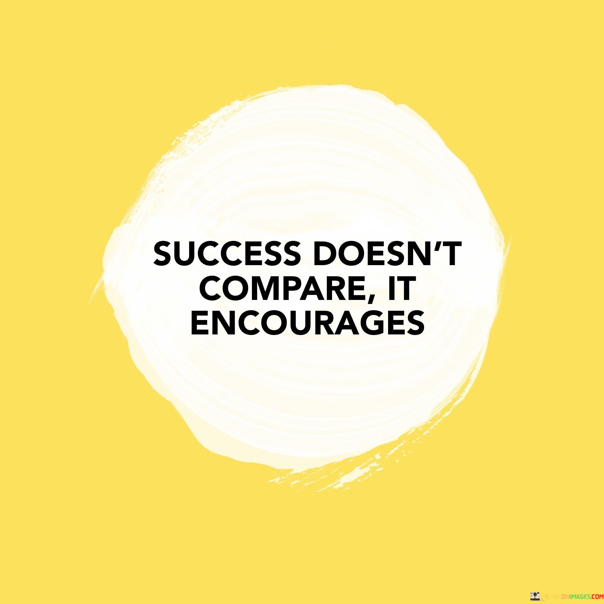 "It encourages" implies that success should inspire and uplift others. Instead of fostering competition, success should be a source of motivation for others to pursue their own goals and dreams.