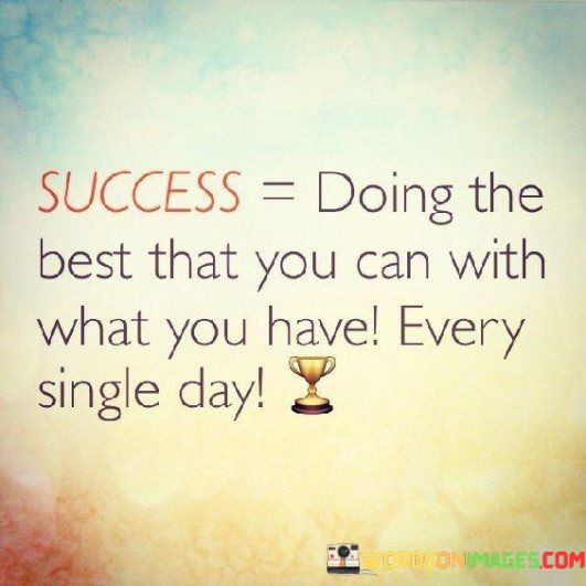 This phrase emphasizes that success is achieved by consistently giving your best effort with the resources and circumstances available to you each day. It suggests that success is not solely measured by external factors, but by the commitment to continuous improvement and diligent work.