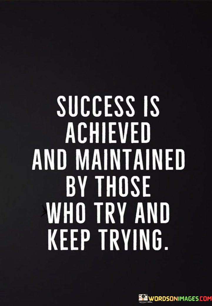 The statement "Success is achieved and maintained by those who try and keep trying" succinctly captures the essence of persistence and resilience in the pursuit of accomplishment. In this context, the first paragraph emphasizes the initial act of attempting as the starting point for success.