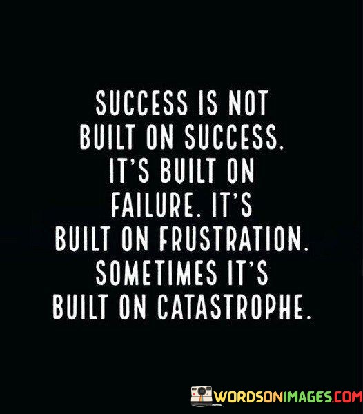 "Success Is Not Built on Success; It's Built on Failure, It's Built on Frustration, Sometimes It's Built on Catastrophe": This statement challenges the common perception that success is a linear progression of positive outcomes. It suggests that true success often emerges from the lessons learned and resilience gained through failures, challenges, and even crises.