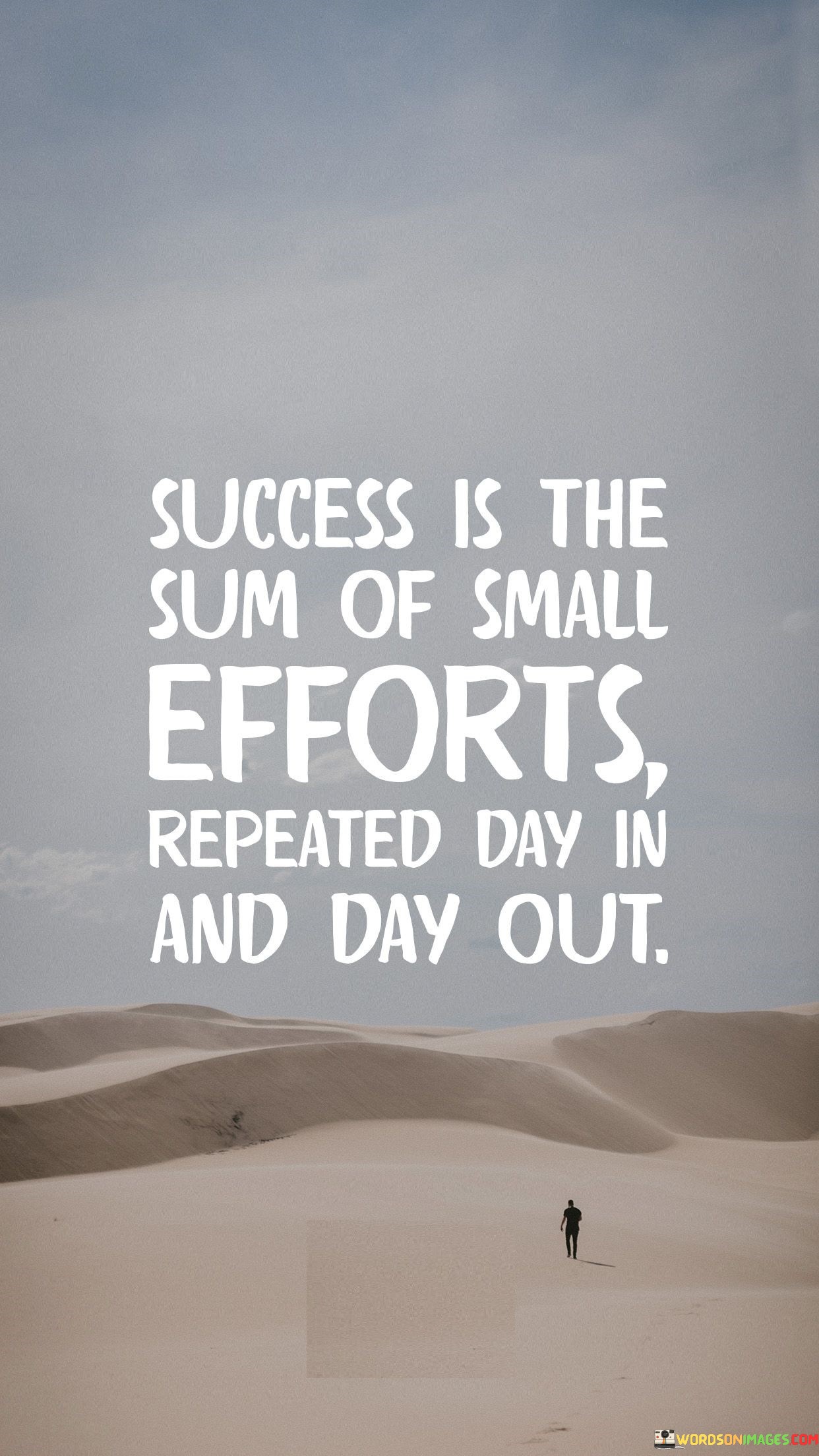 "Success is the sum of small efforts repeated day in and day out." This quote underscores the concept that achieving success is a result of consistently applying small actions and efforts over time.