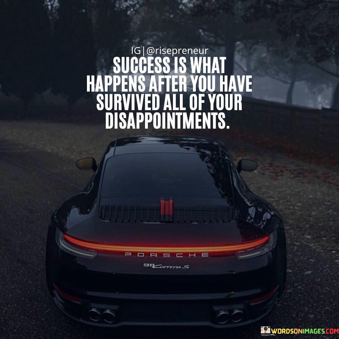 This quote suggests that success follows a period of enduring disappointment. It implies that facing and overcoming setbacks, failures, and letdowns is an integral part of the journey towards achieving success. Success, in this context, is not immediate but rather a reward for resilience and perseverance.