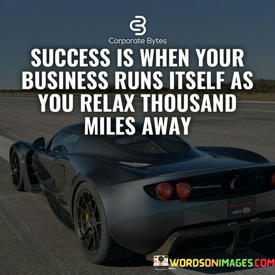 In essence, this phrase encapsulates the idea that success is attained when a business becomes self-reliant, freeing the owner to enjoy the rewards of their efforts from a distance. It highlights the importance of establishing a solid foundation and efficient operations in achieving this level of accomplishment.