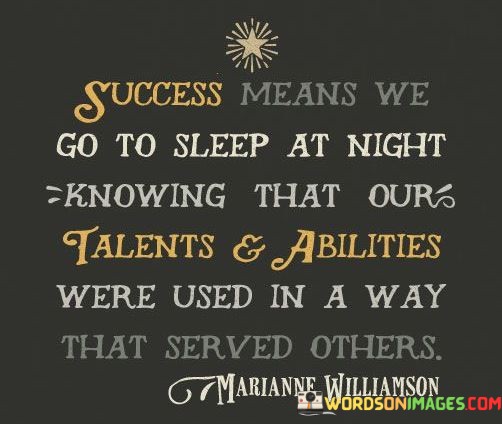In essence, the statement promotes a holistic and altruistic perspective on success. It encourages individuals to align their goals and actions with the betterment of others, leading to a sense of purpose and contentment that goes beyond individual accomplishments. By serving others with their talents, individuals can find deeper meaning and fulfillment in their journey.