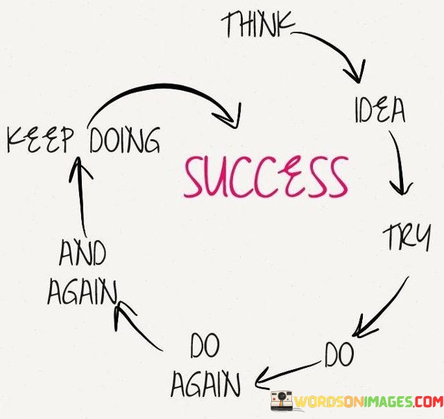 In summary, the quote conveys that success is the outcome of deliberate thinking, experimentation, and persistent action. It encourages individuals to embrace a cycle of learning, adapting, and trying again in their pursuit of achieving their aspirations.