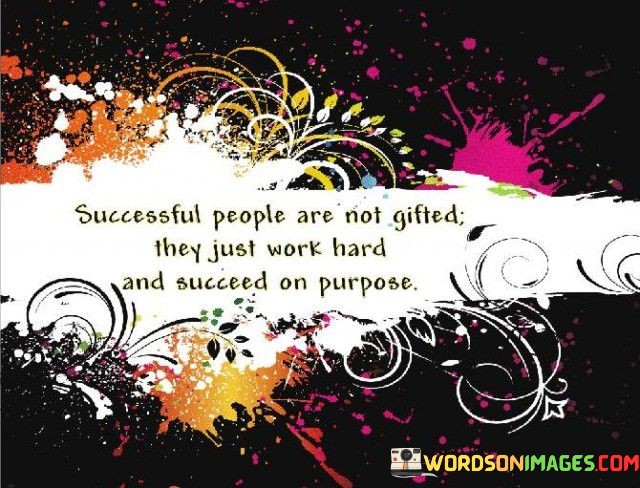 "Successful people are not gifted; they just work hard and succeed on purpose." This quote challenges the notion that success is solely a result of natural talent, emphasizing that hard work and intentional effort are the driving forces behind achievements.