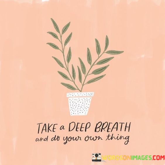 Pause for a moment and inhale deeply, then follow your unique path. The quote encourages taking a break from the chaos and embracing your individual journey. Just like a breath rejuvenates, doing your own thing revitalizes your spirit.