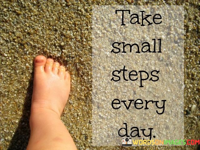 The saying "Take Small Steps Every Day" reminds us that progress doesn't require giant leaps. Instead, it emphasizes the power of consistency and gradual progress. By breaking down our goals into smaller, manageable tasks, we make them less intimidating and more achievable. Imagine trying to climb a mountain; if you focus on taking one small step at a time, you'll eventually reach the summit. It's a reminder that even the tiniest effort each day can lead to significant results over time.