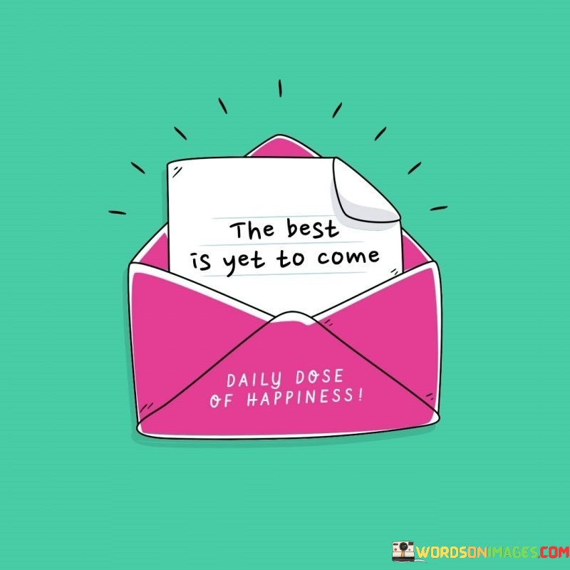 Anticipate better things in the future. This quote conveys the idea that there are positive experiences still ahead. It's like looking forward to unwrapping a gift that holds wonderful surprises.