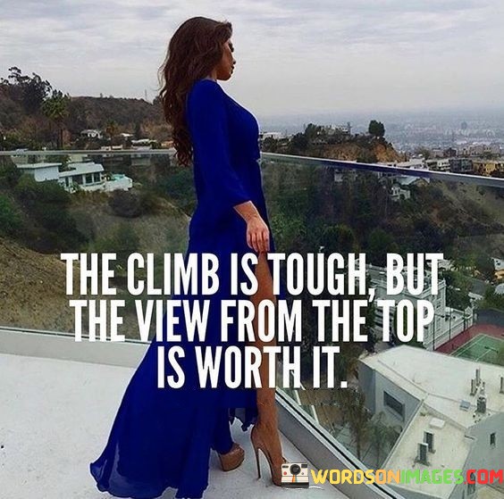 This quote emphasizes that although the journey to success or accomplishment might be challenging and demanding, the rewards and sense of achievement gained upon reaching the goal are incredibly valuable. It suggests that the difficulties faced during the climb are overshadowed by the beauty and satisfaction of the destination.